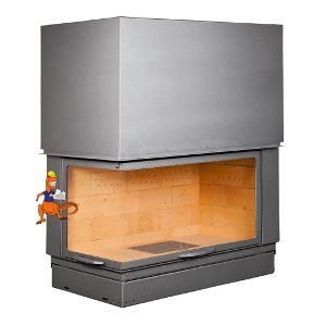 Stalowy wkład kominkowy z szamotem: - 5 lat gwarancji na wkład - 10 lat gwarancji na szamot - certyfikat CE - zgodność z normą EN 13229 - symbol FLAMME VERTE - materiał wykonania wkładu: stal - materiał akumulacyjny:  cegła szamotowa - regulacja dopływu powietrza do spalania - szyber do regulacji siły ciągu - drzwi podnoszone - lewa boczna szyba (gięta, bez szprosu) - spalanie wtórne - paliwo opałowe: drewno